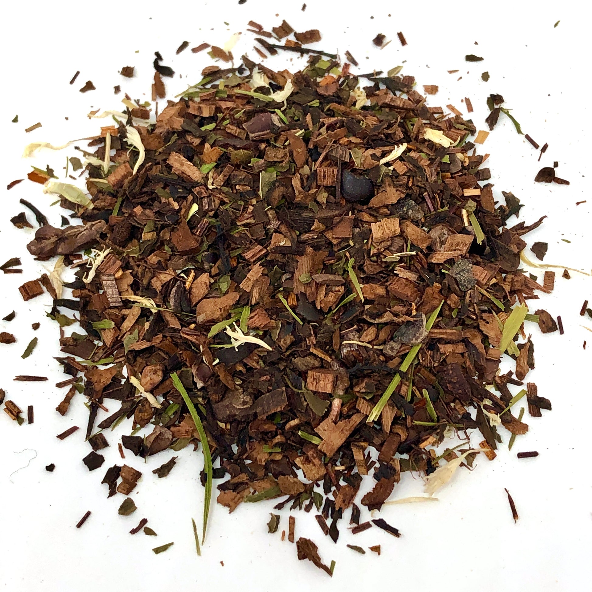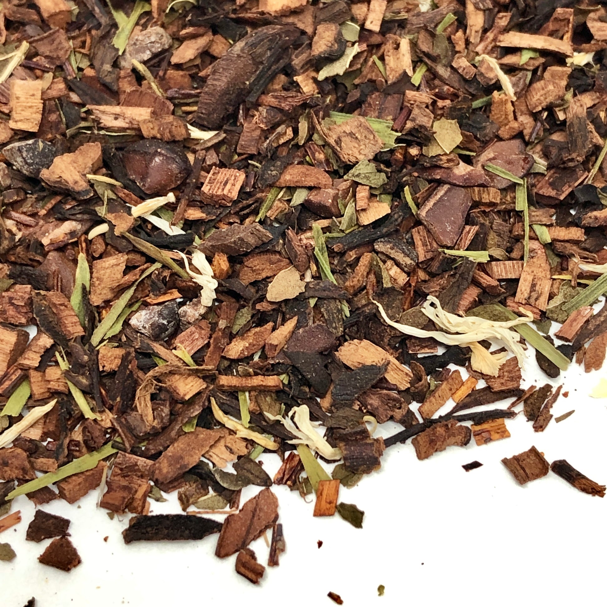 ingredients: honeybush, cocoa pieces, peppermint, bamboo leaves, flavour
