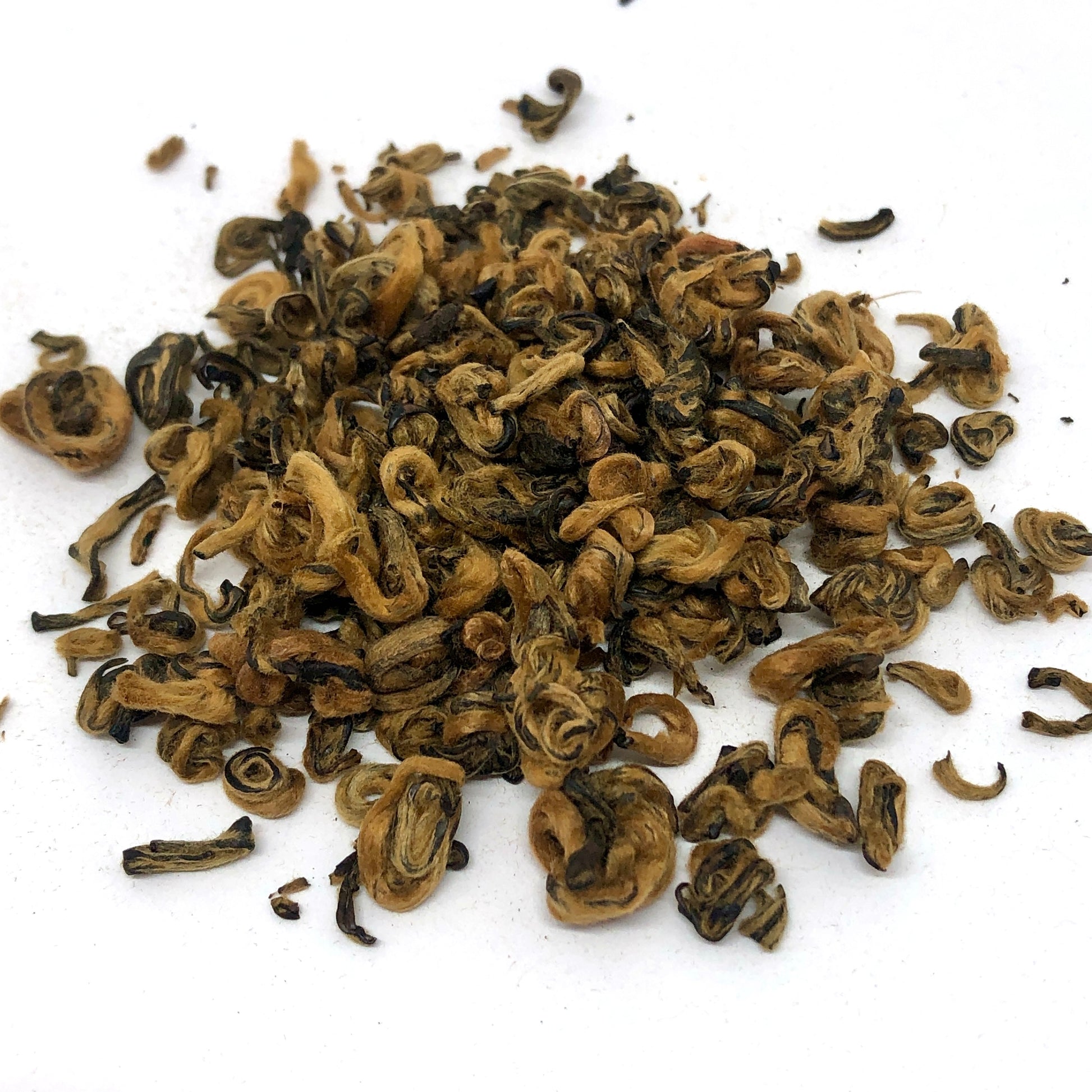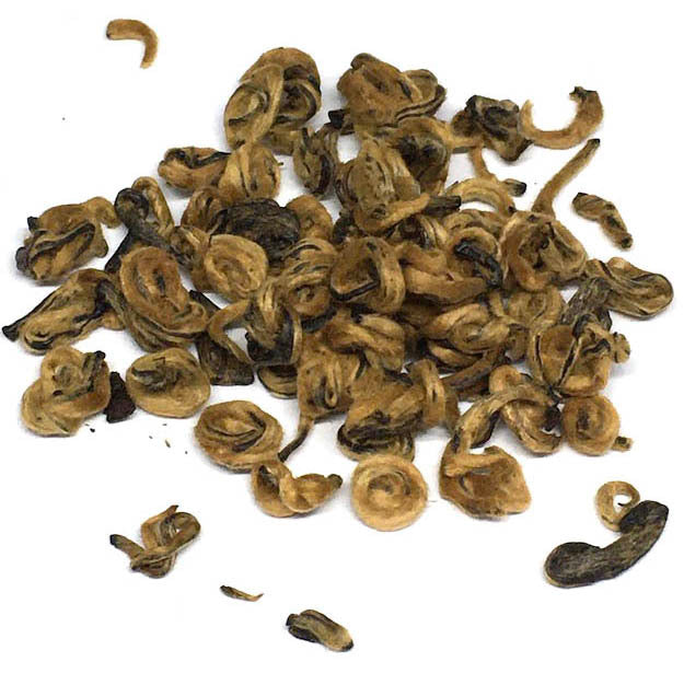 This tea from Hunan Province is grown without chemical fertilizers or pesticides and is made solely from lovely rolled golden-hued buds. The result is a surprising liquor that is both silky and aromatic. Rich aromas of caramel and mild spices harmonize well with subtle vegetable notes (corn, tomato, and artichoke hearts) to create a balanced and particularly admirable vintage.