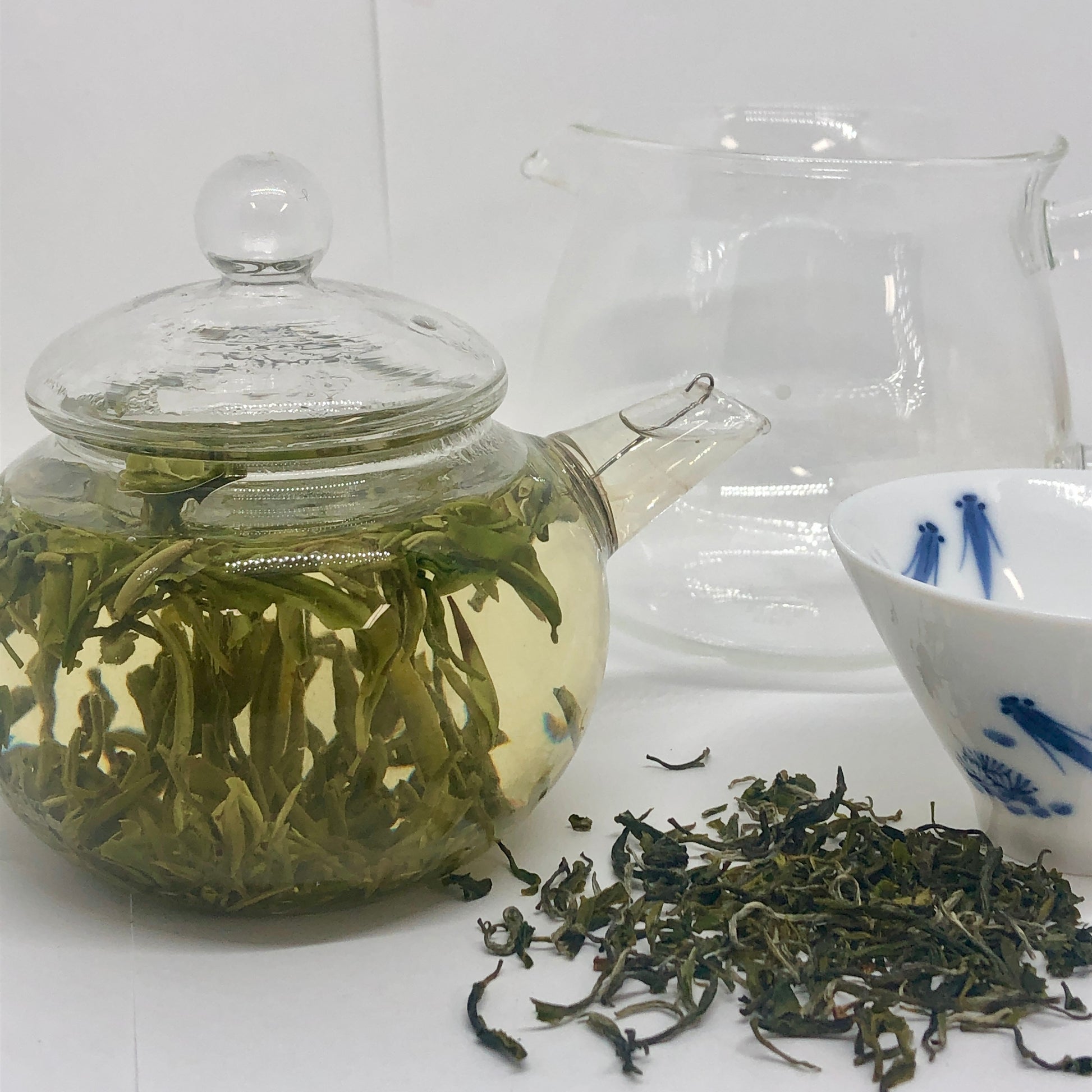 The curly leaves accompanied by generous buds features yellowish ivory young leaves and assume white color after steeped, boasting fine color, aroma and taste. Herbaceous accents bring to mind fiddle-heads, tarragon, buttered green beans, and freshly cut hay, while its floral side has highlights of sweet clover and narcissus, as well as a subtle hint of white peach in the finish. Round and satisfying, this green tea is just as balanced in the nose as on the tongue.